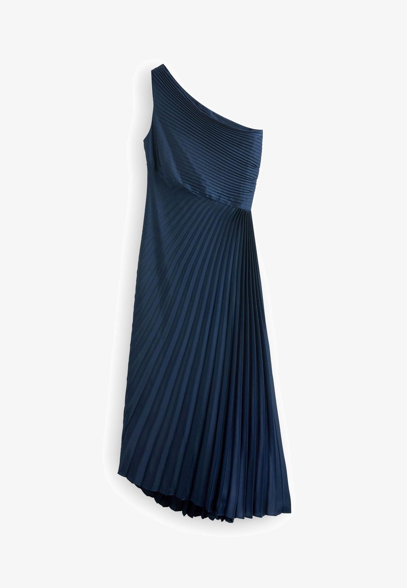 Next One Shoulder Satin Pleated Midi Dress Occasion Wear Navy Blue Dark Blue Zalando De